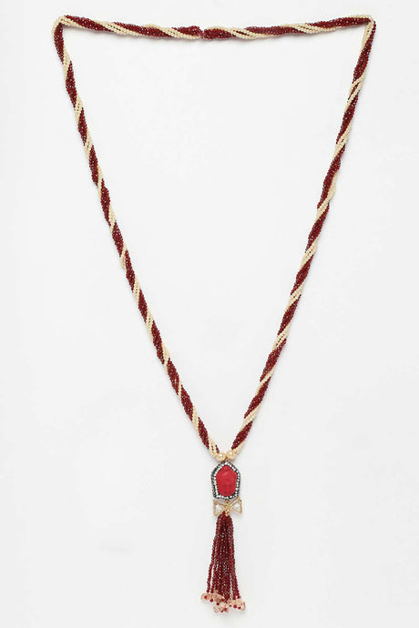 Maroon And Gold Gold-Plated American Diamonds And Pearls Bead Necklaces