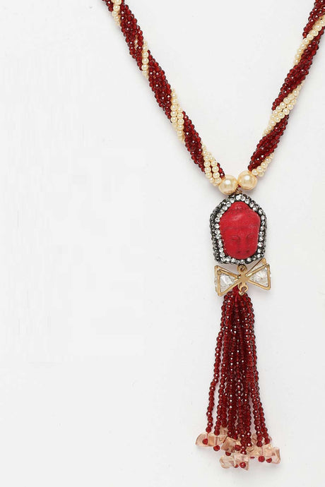 Red And Gold Layered Necklace With Kundan And Natural Stones