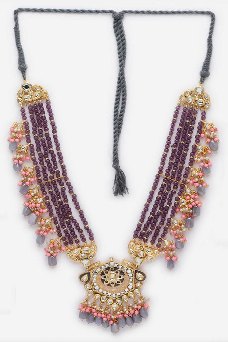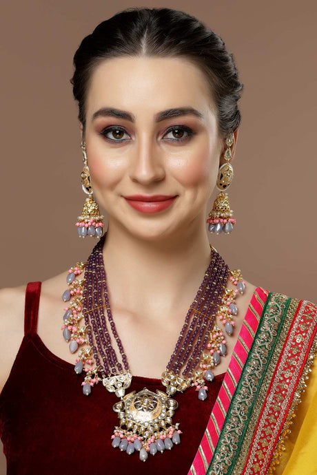 Purple And Red Gold-Plated Kundan And Pearls Bead Necklaces