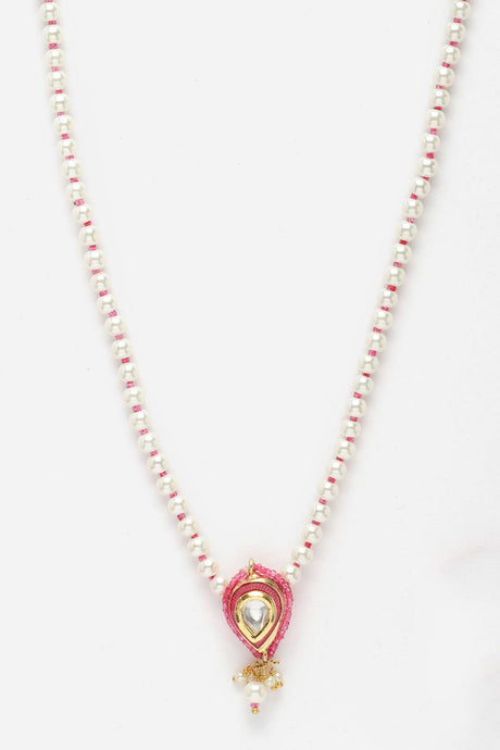 Pink And Red Gold-Plated Kundan And Pearls Bead Necklaces