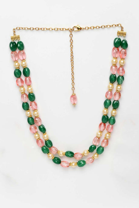 Green And Pink Gold-Plated Pearls And Natural Stones Bead Necklaces