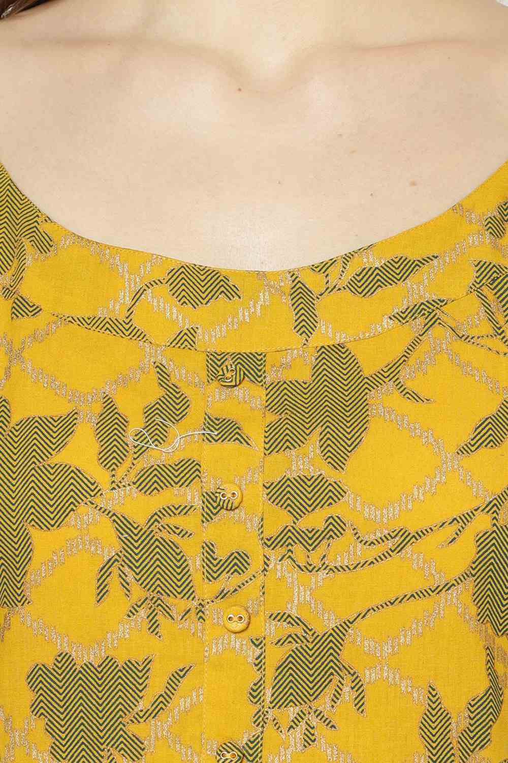 Blended Cotton Floral Kurti Top In Yellow