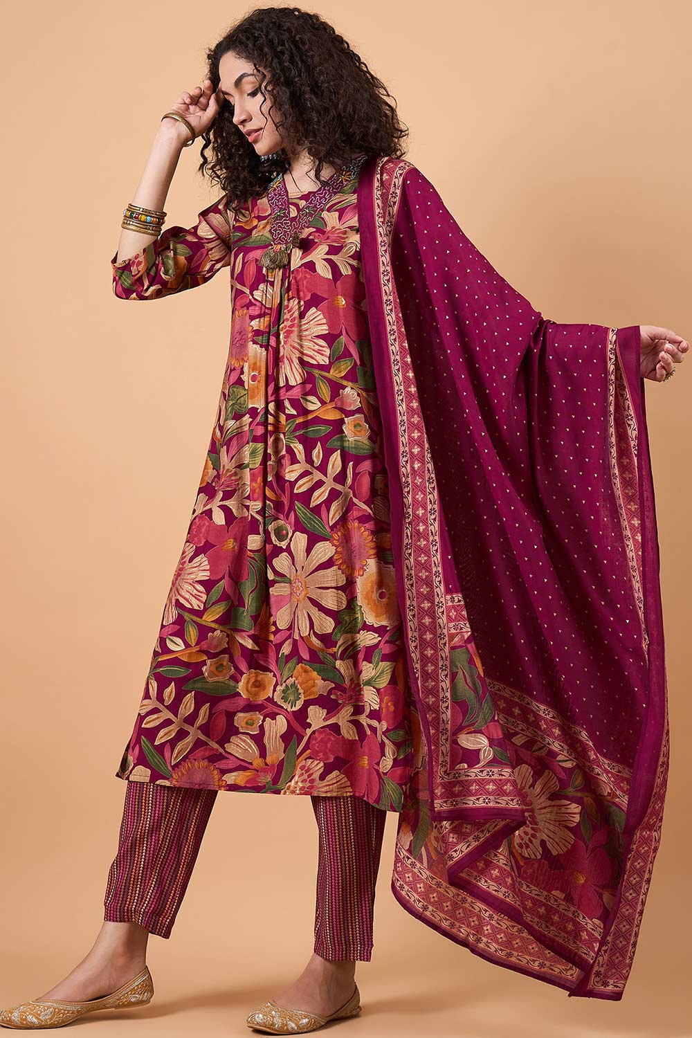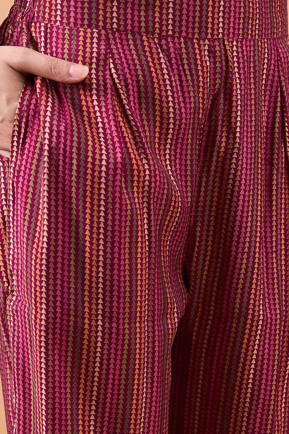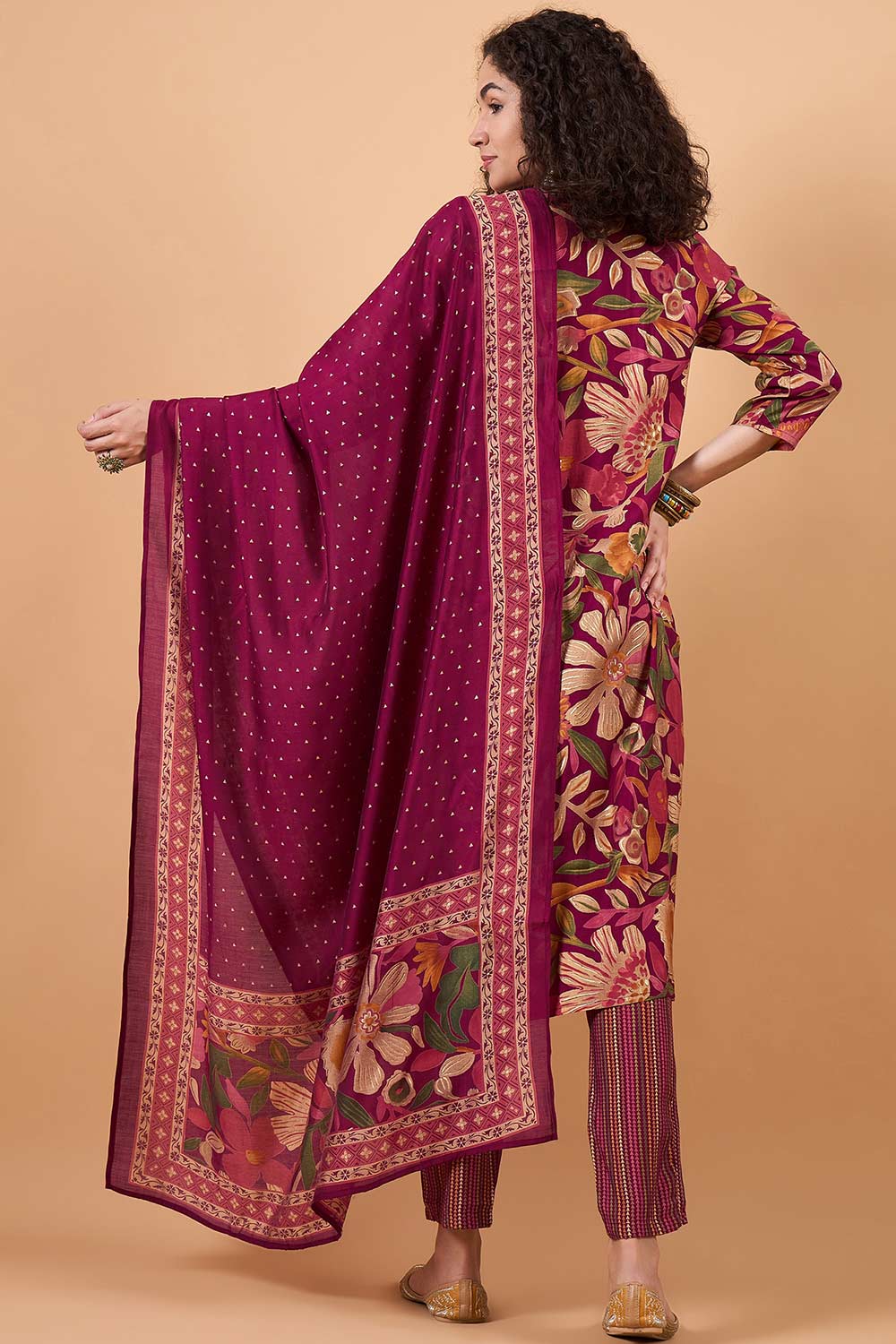 Elevate your style with this exquisite Maroon Silk Blend Printed Kurti Pant Set. Combining the opulence of silk with a rich, maroon hue, this set offers a sophisticated and glamorous look perfect for special occasions and festive events.