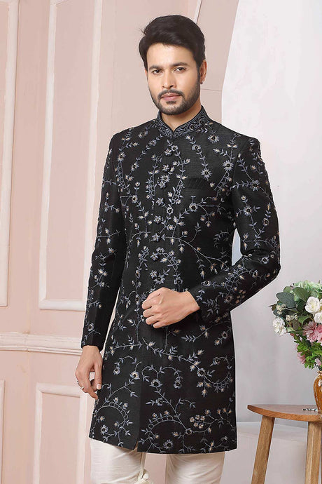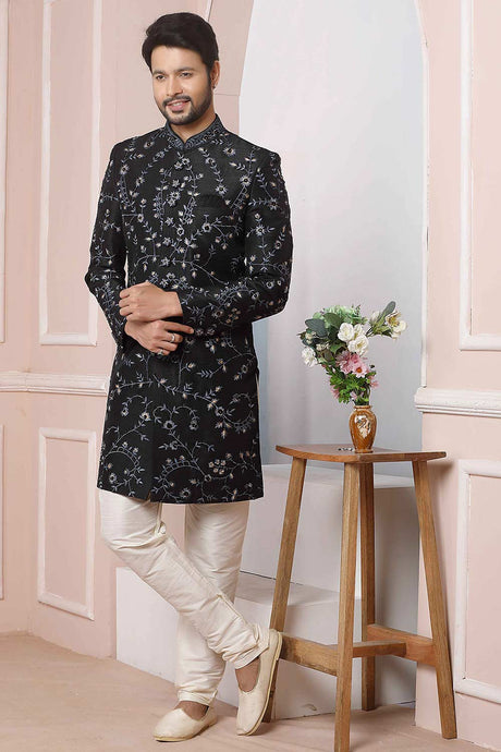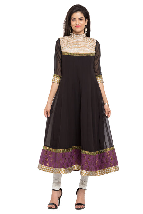 Black Embroidered Georgette Stitched Anarkali Suit Set