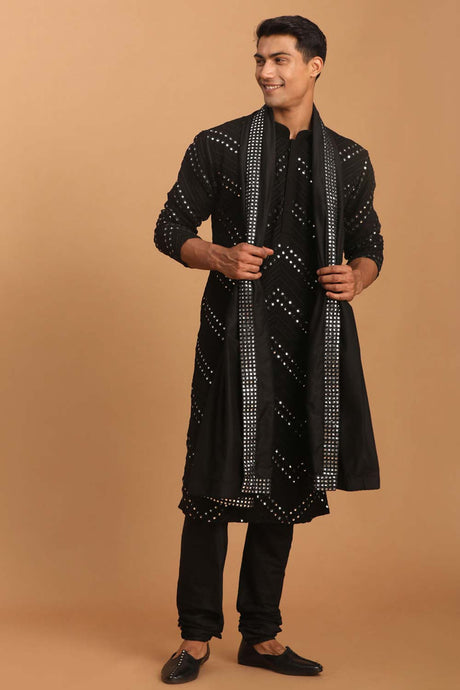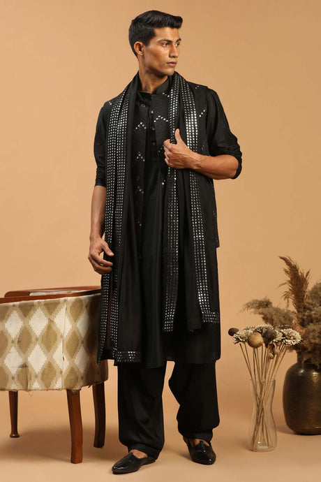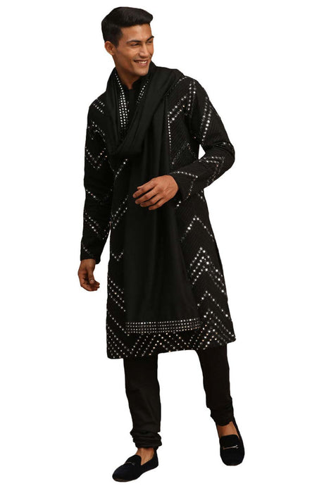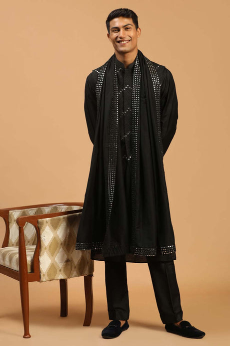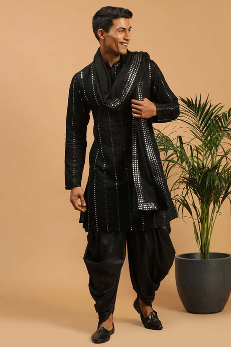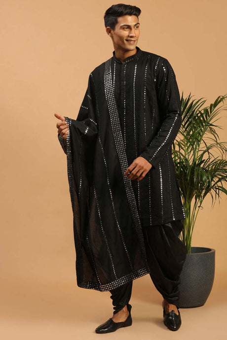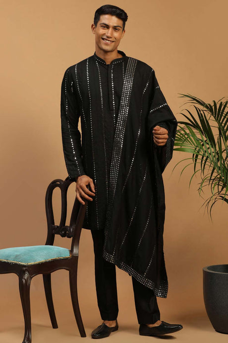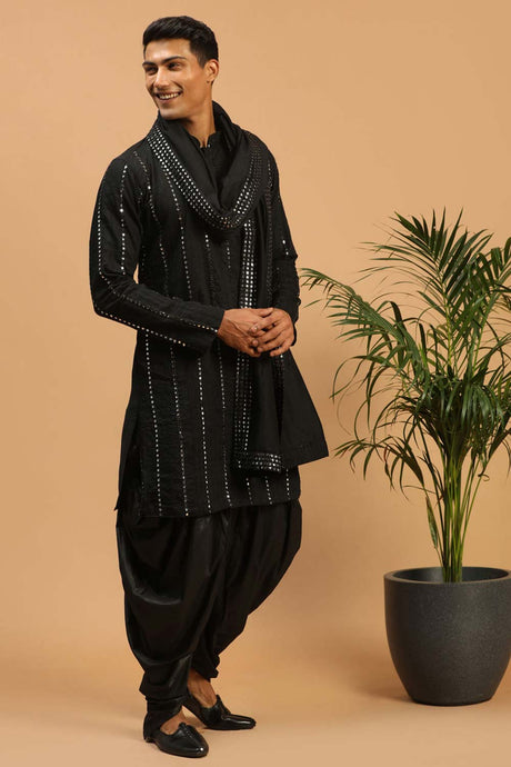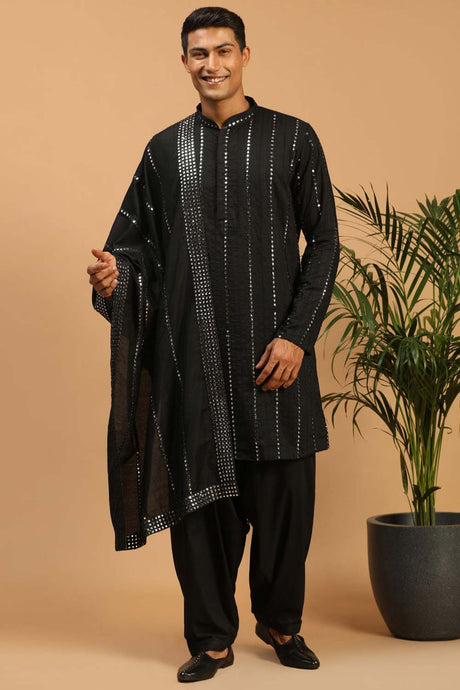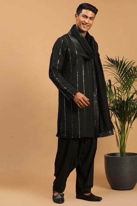Black Velvet Hand Work Kurta Pant With Net Dupatta Set