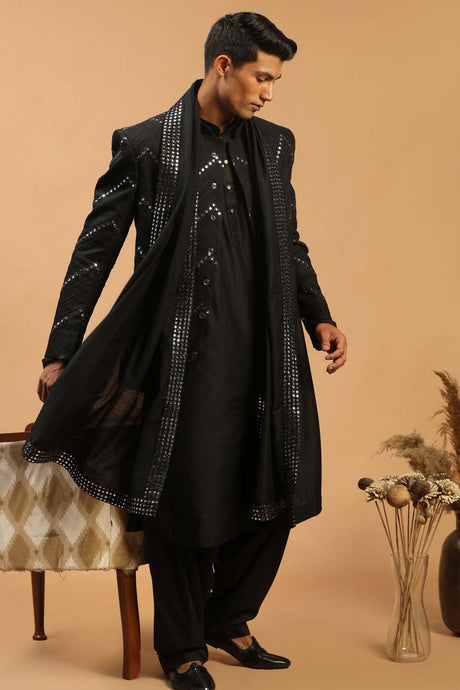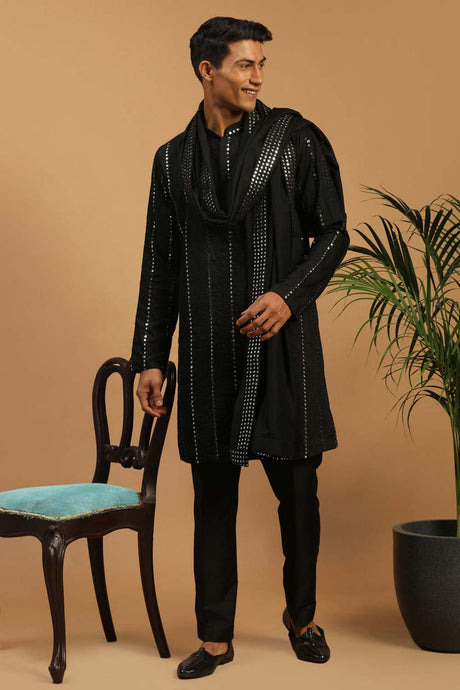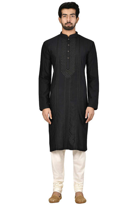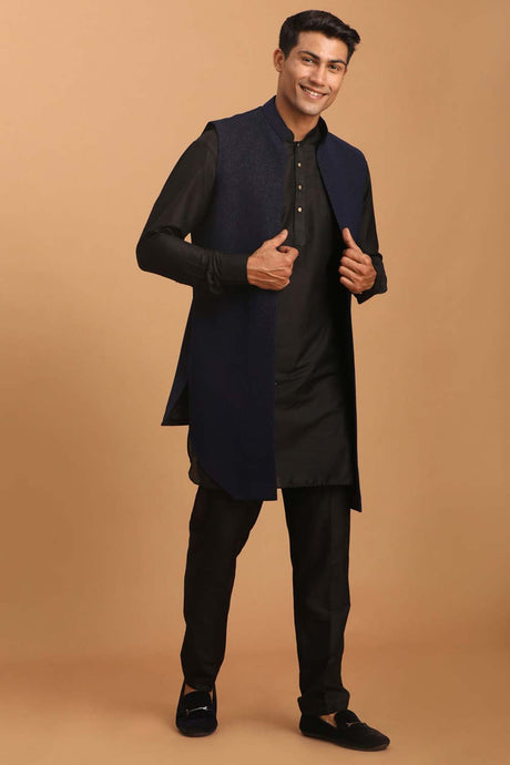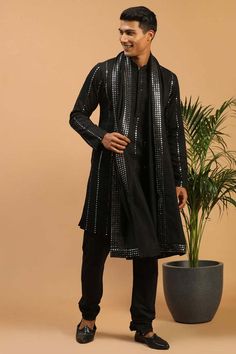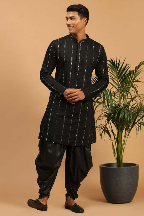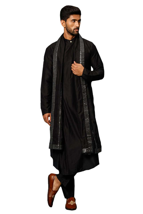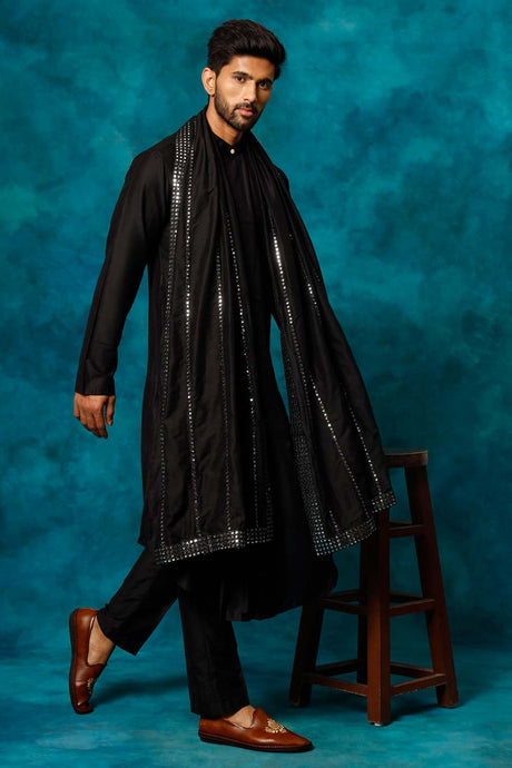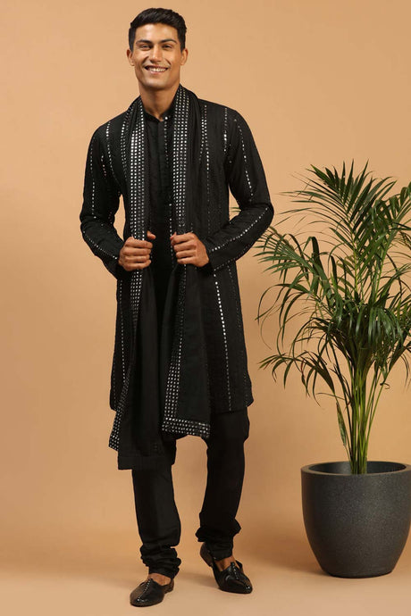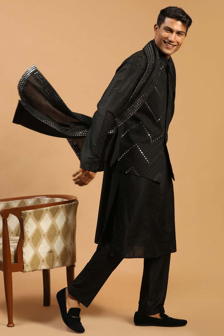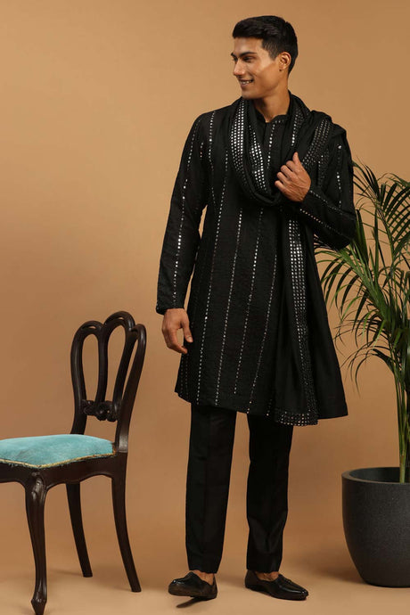 Black Velvet Hand Work Kurta Pant With Net Dupatta Set