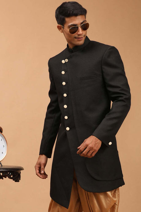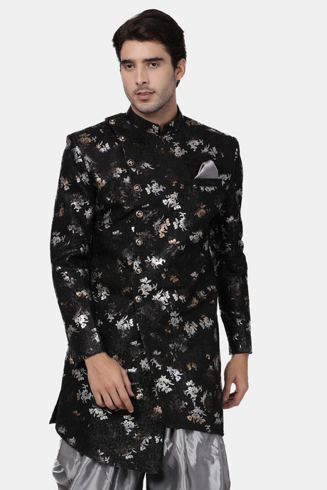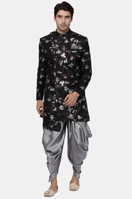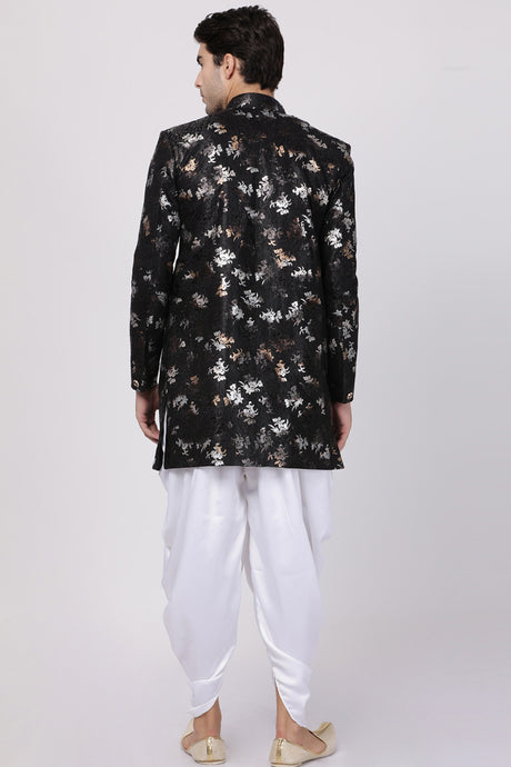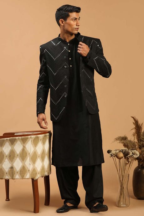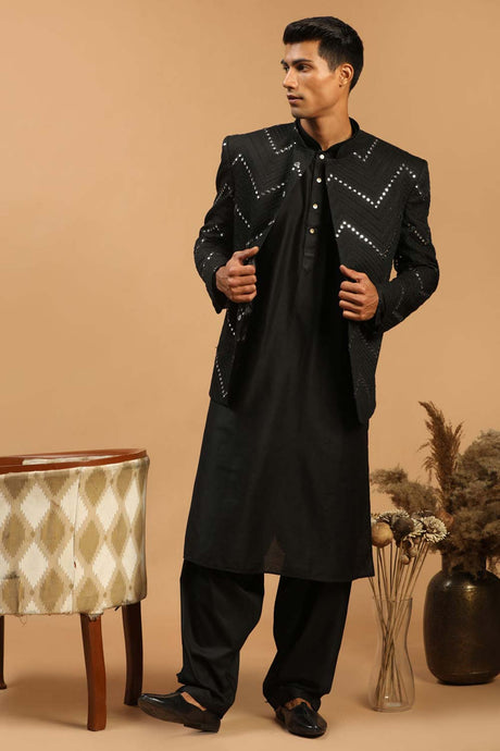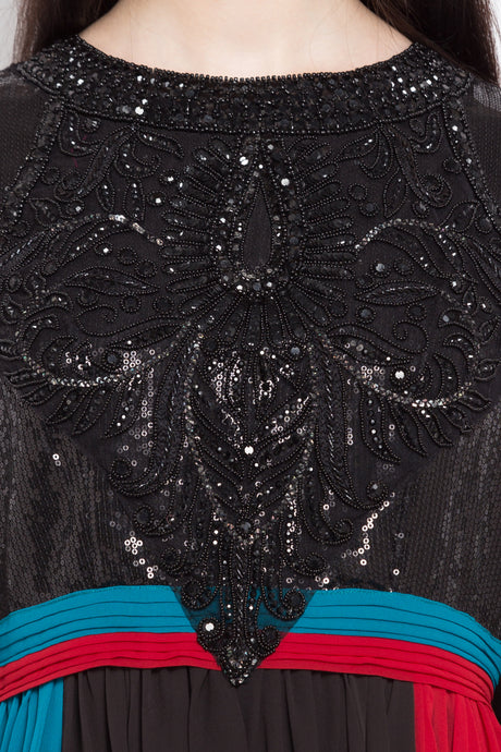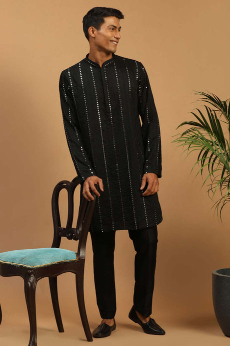 Black Embroidered Georgette Asymmetrical Kurti Pant Set