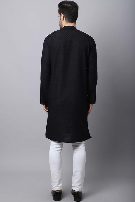 Men's Cotton Art Silk Kurta Set In Black