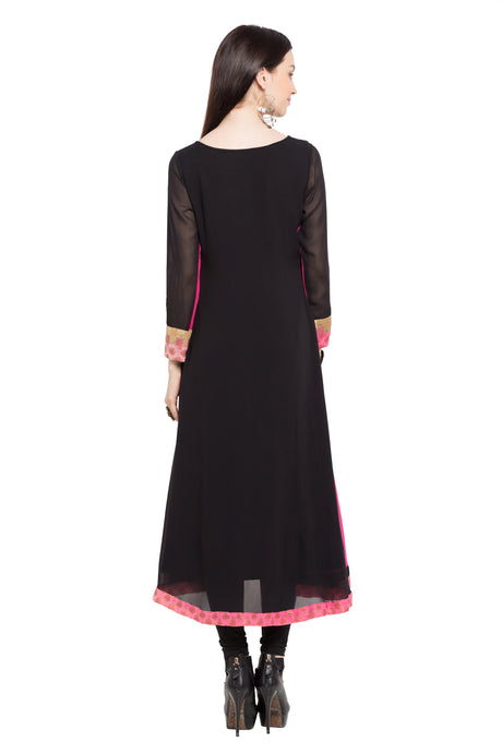 Faux Georgette Anarkali Kurti Top In Black
