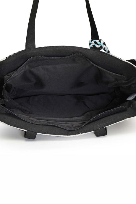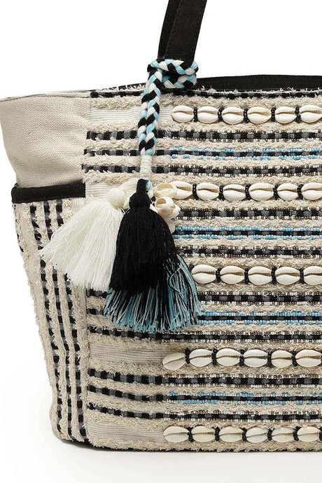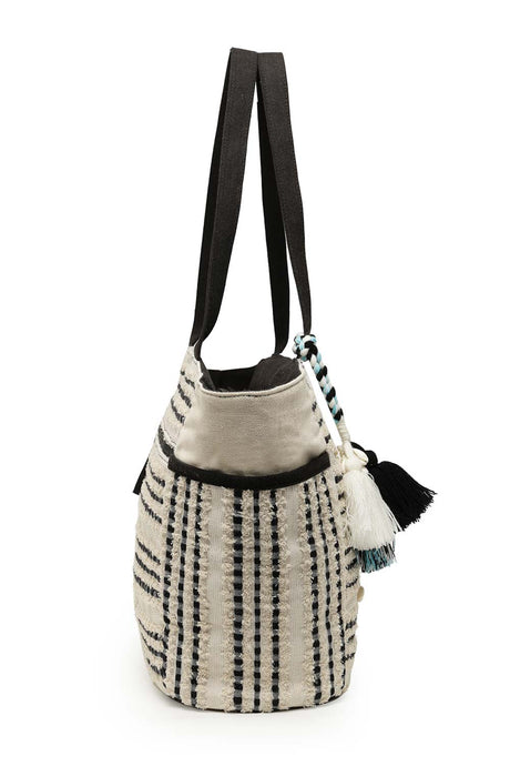 Boho Beige And Black Striped Cotton Jacquard Tote Bag