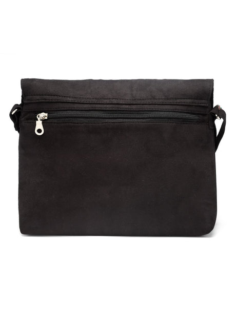 Lush Black And Multi Floral Embroidered Suede Sling Bag