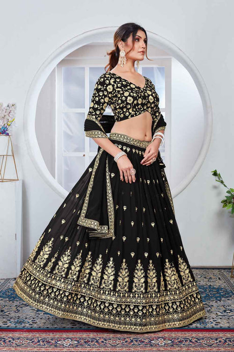 Black Taffeta Silk Embroidered Work Lehenga Choli