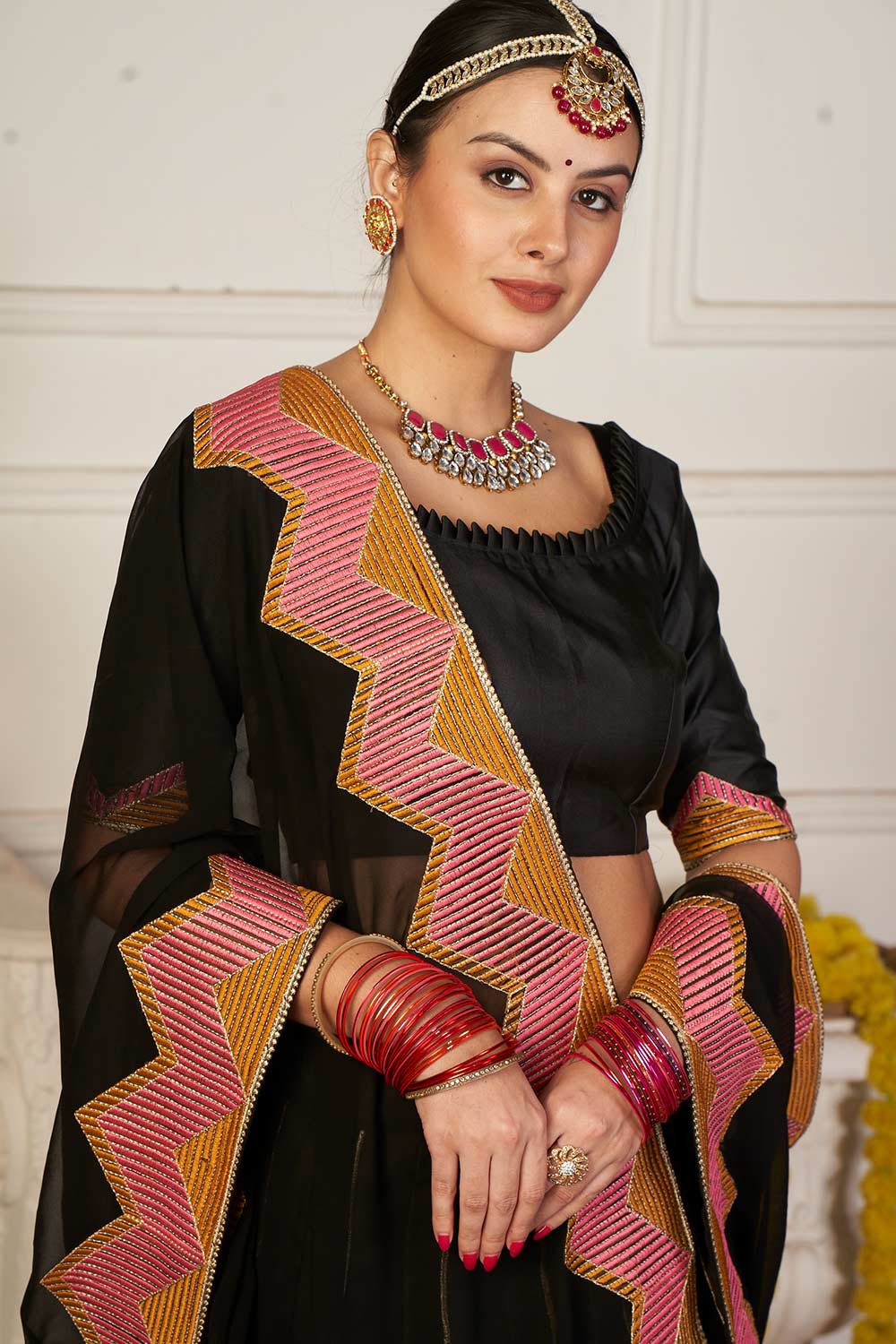 Black Taffeta Silk Embroidered Work Lehenga Choli