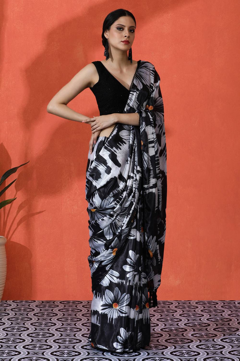 Elevate your wardrobe with our exquisite Saree a masterpiece crafted to add timeless elegance to your style. Made from Chinon this saree offers a perfect mix of comfort and sophistication. Adorned with Floral Printed it showcases intricate craftsmanship that speaks volumes of tradition and artistry. Perfect for Party this saree is a versatile addition to your collection, ensuring you stand out effortlessly. Pair it with elegant Jewelry, such as [for a glamorous look. Add Clutches or Potli Bags and complete the ensemble with Wedges & Heels , making it a perfect choice for any event. Make a statement and embrace the elegance of Saree today