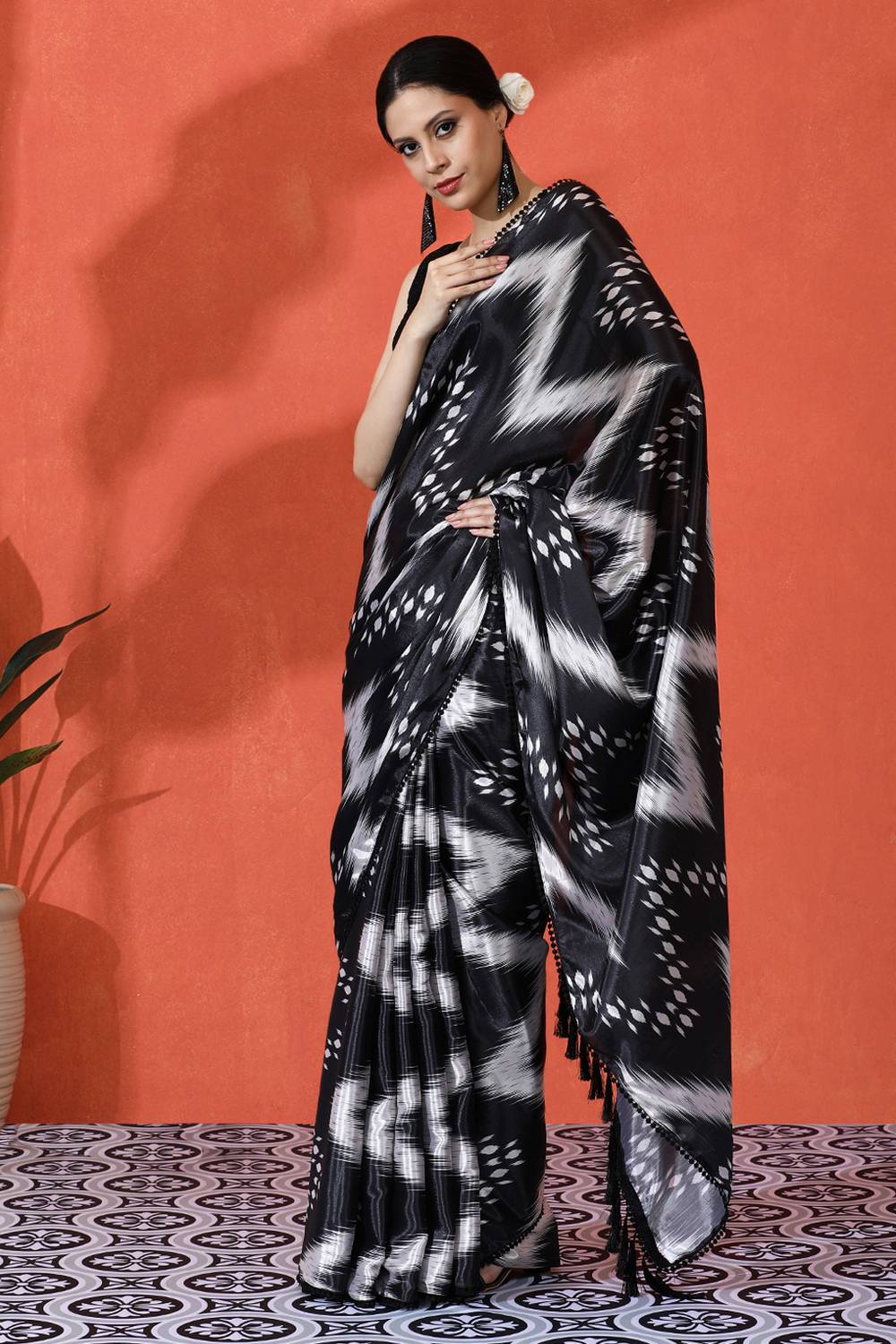 Elevate your wardrobe with our exquisite Saree a masterpiece crafted to add timeless elegance to your style. Made from Chinon this saree offers a perfect mix of comfort and sophistication. Adorned with Printed it showcases intricate craftsmanship that speaks volumes of tradition and artistry. Perfect for Party this saree is a versatile addition to your collection, ensuring you stand out effortlessly. Pair it with elegant Jewelry, such as [for a glamorous look. Add Clutches or Potli Bags and complete the ensemble with Wedges & Heels , making it a perfect choice for any event. Make a statement and embrace the elegance of Saree today