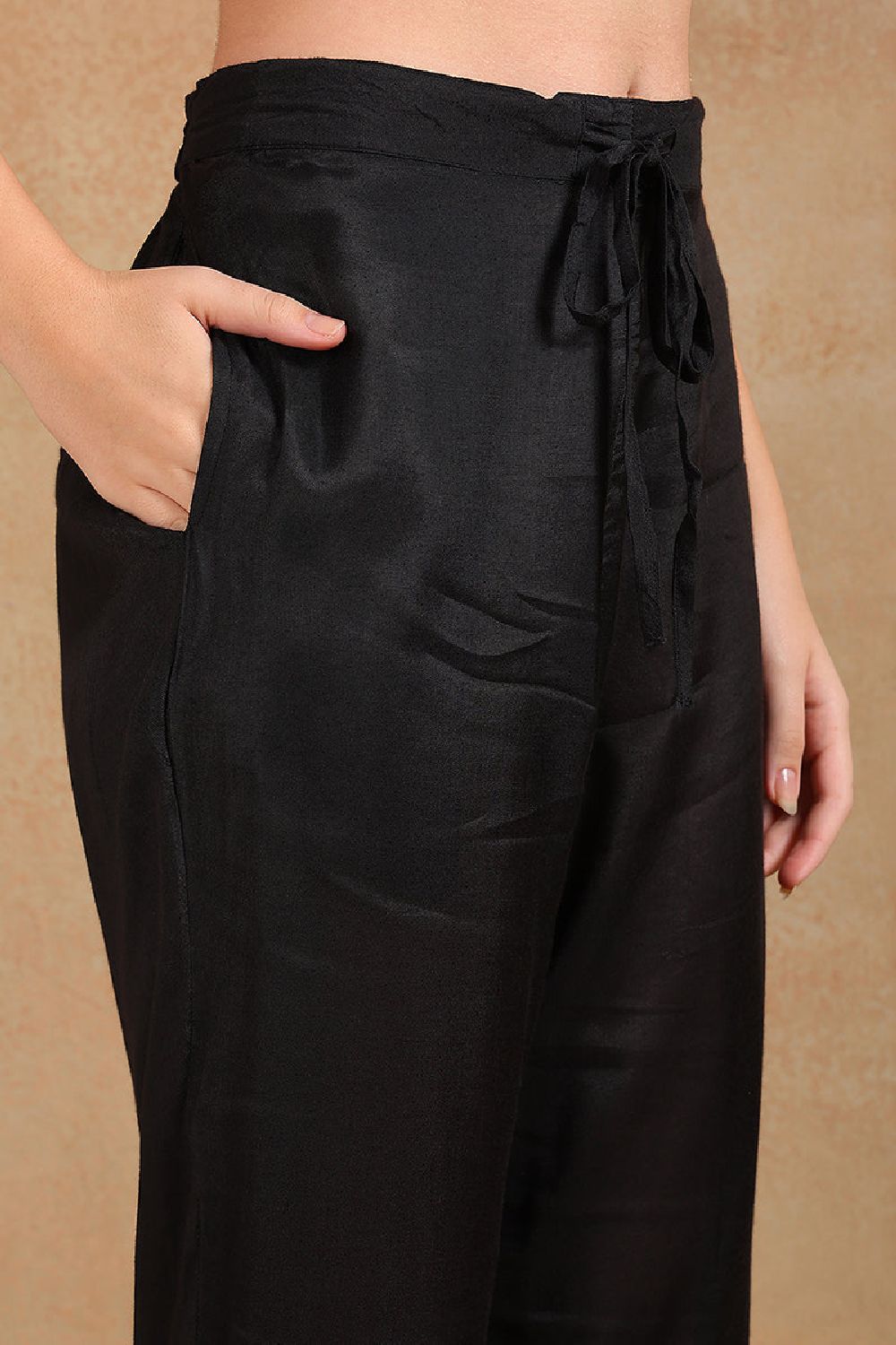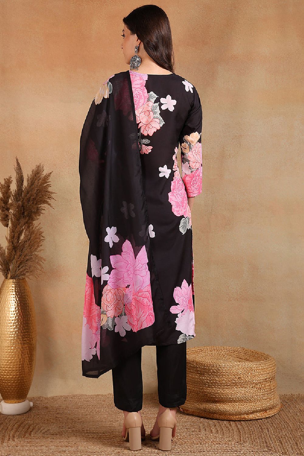 Black Cotton Blend Floral Printed Straight Cut Pant Suit Set