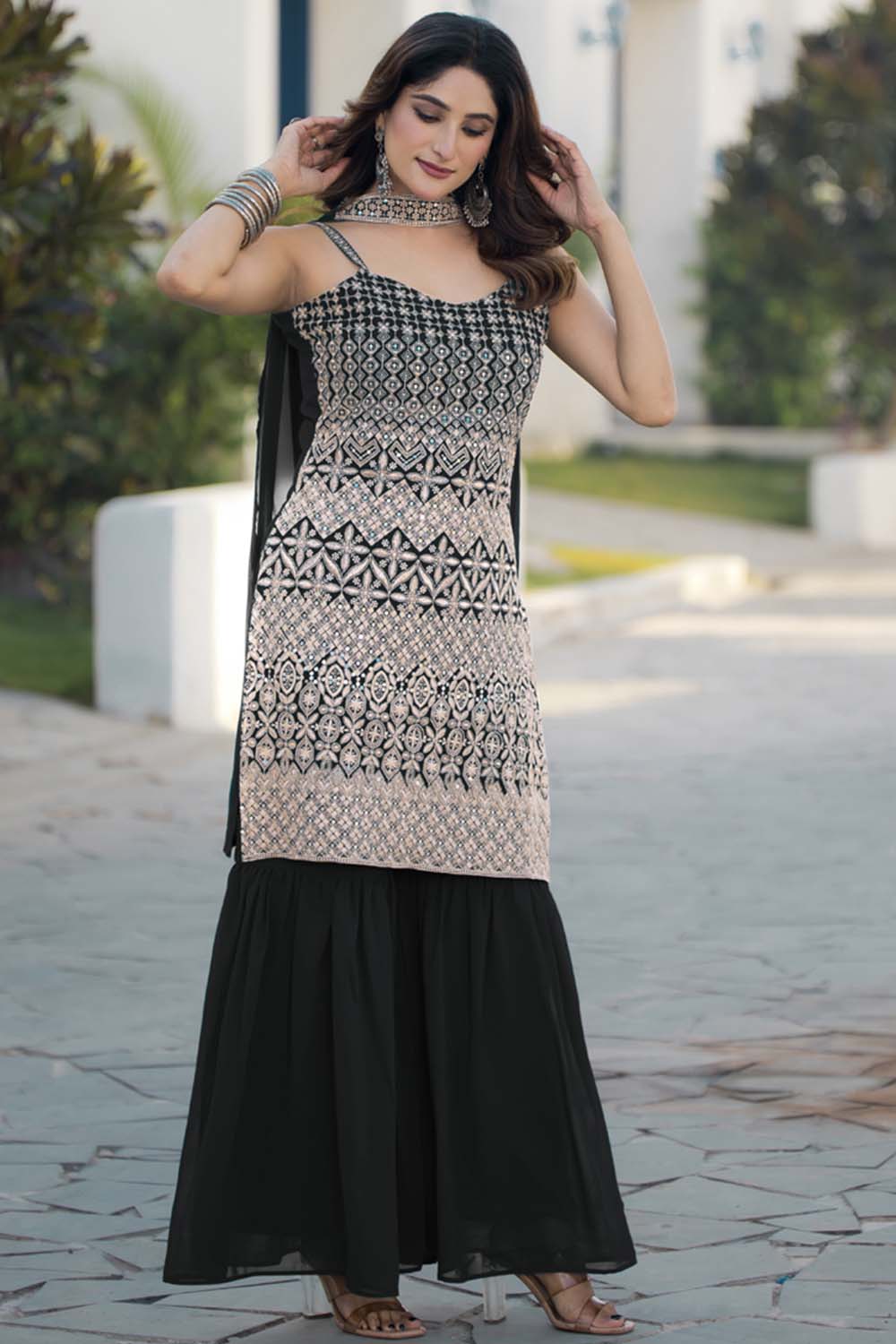 Black Sequin with Embroidered Georgette Sharara Suit Set