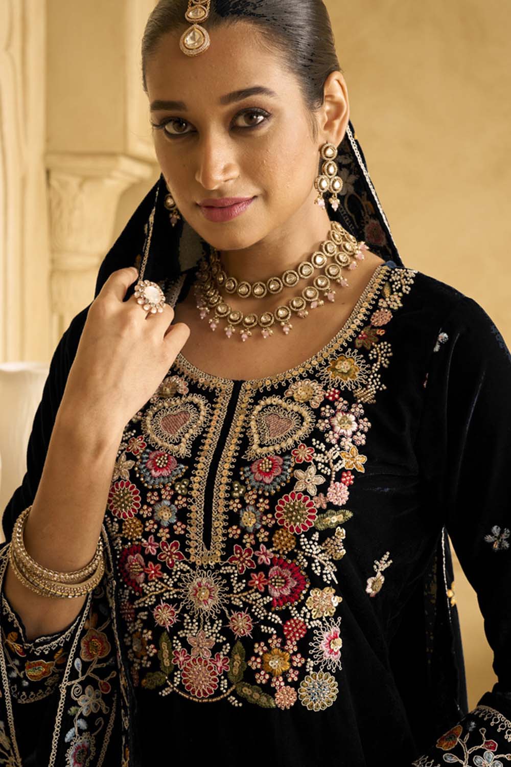 Black Sequin with Embroidered Velvet Palazzo Suit Set