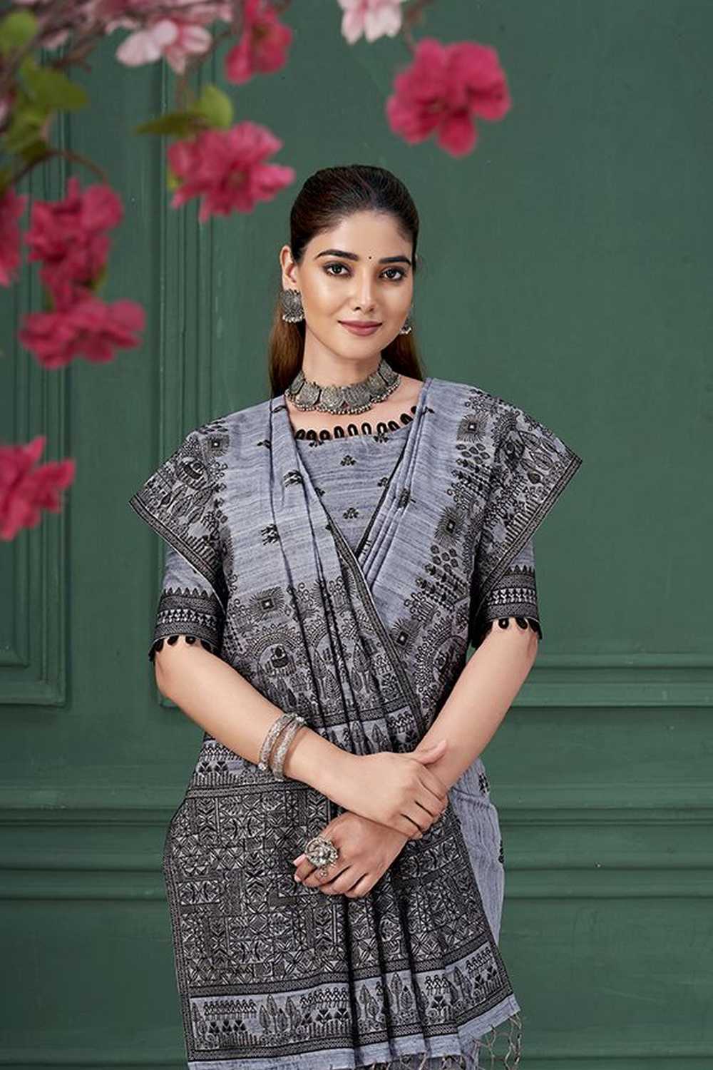 Elevate your wardrobe with our exquisite Saree a masterpiece crafted to add timeless elegance to your style. Made from Silk this saree offers a perfect mix of comfort and sophistication. Adorned with Warli Printed it showcases intricate craftsmanship that speaks volumes of tradition and artistry. Perfect for Saree this saree is a versatile addition to your collection, ensuring you stand out effortlessly. Pair it with elegant Jewelry, such as [for a glamorous look. Add Clutches or Potli Bags and complete the ensemble with Wedges & Heels , making it a perfect choice for any event. Make a statement and embrace the elegance of Saree today
