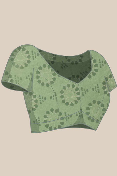 Blue Chanderi Floral Printed Cotton Saree