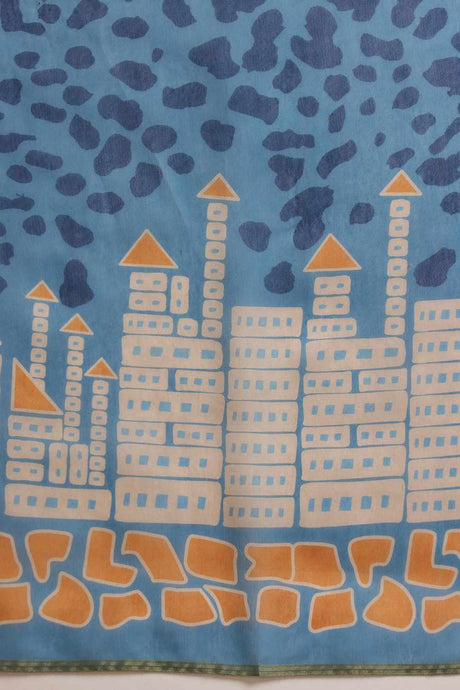 Blue Chanderi Printed Cotton Saree