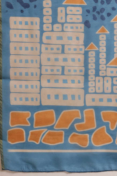Blue Chanderi Abstract Printed Cotton Saree