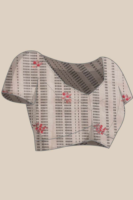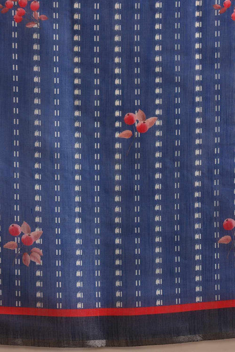 Navy Blue Cotton Woven Thread Floral Saree