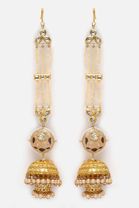 White And Gold Kundan And American Diamonds Jhumkas Earring
