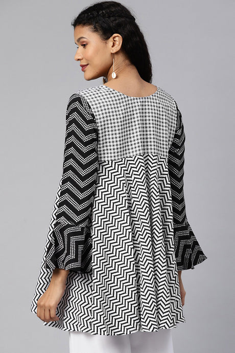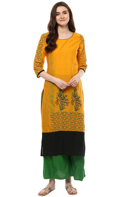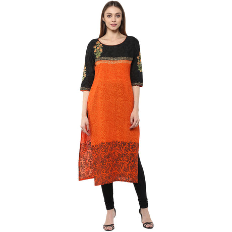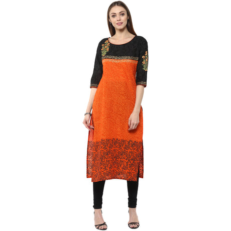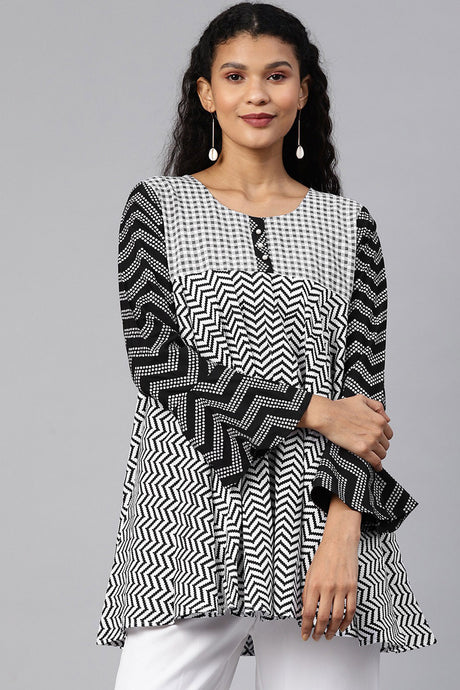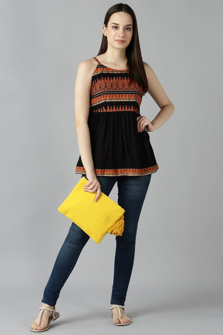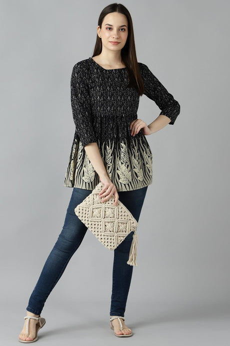Blended Cotton Kalamkari Top In Black