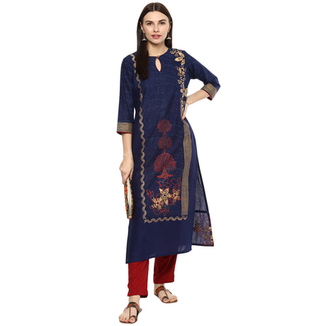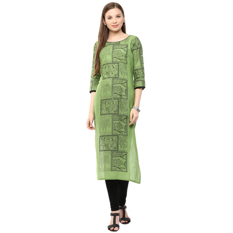 Blended Cotton Printed Kurti Top In Brown