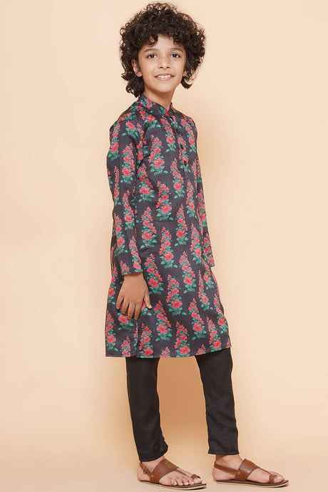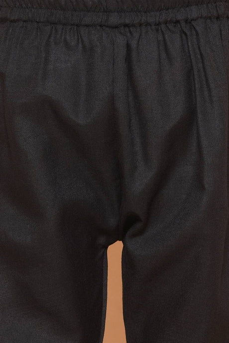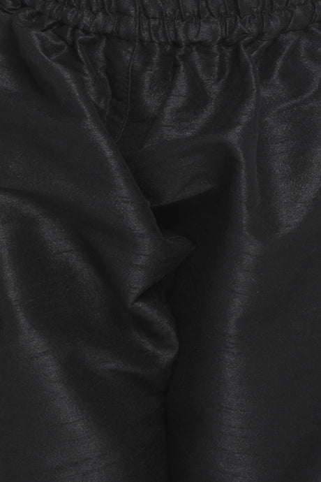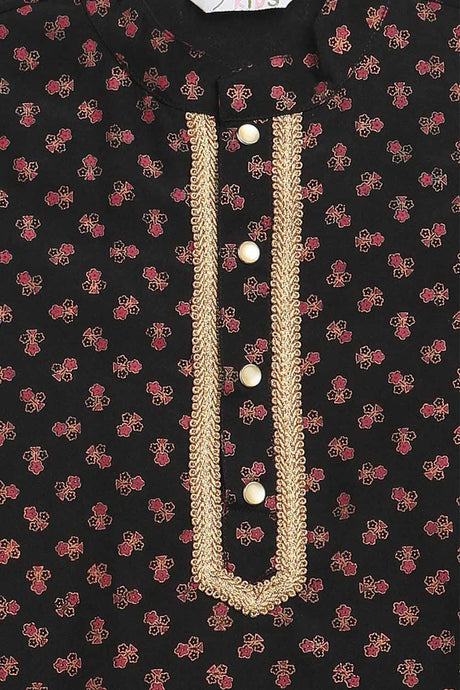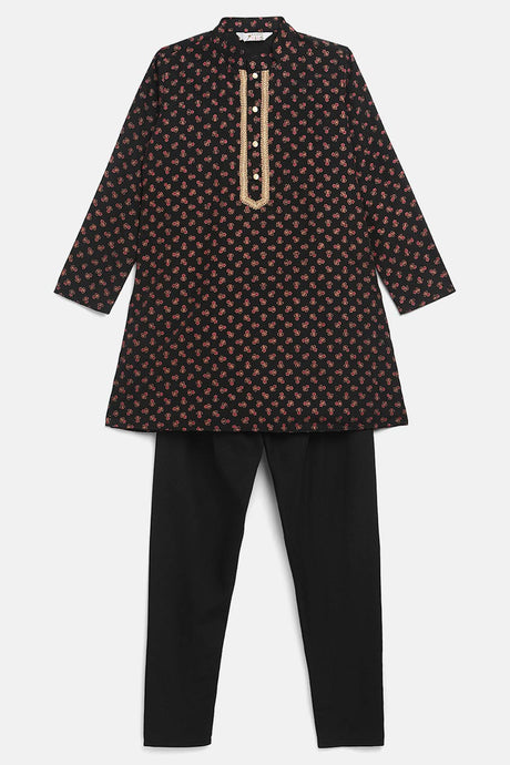 Boys Black Crepe Gold Pigment Print Kids Kurta Churidar Set