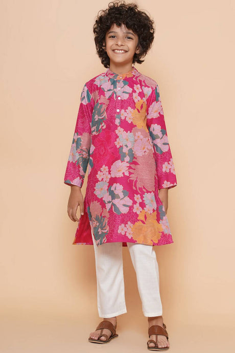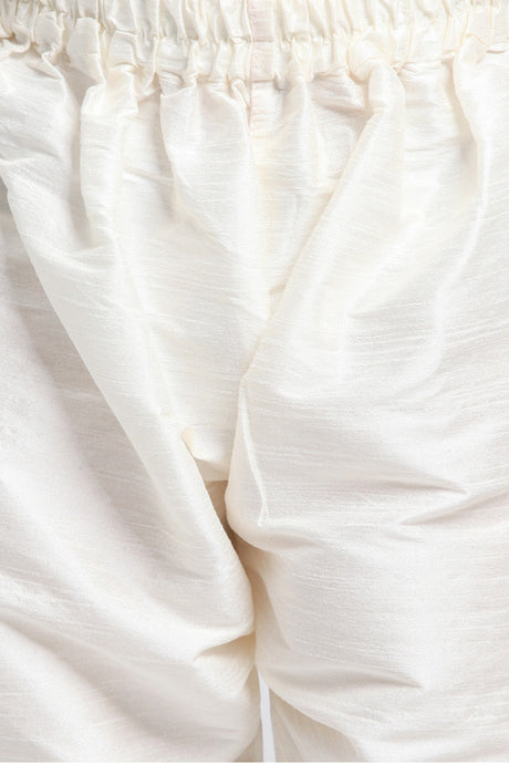 Boy's Blended Cotton Multicolor Kurta Set In White