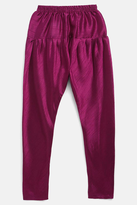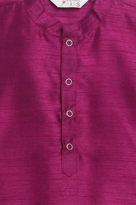 Boys Purple Poly Silk Solid Kids Kurta Churidar Set