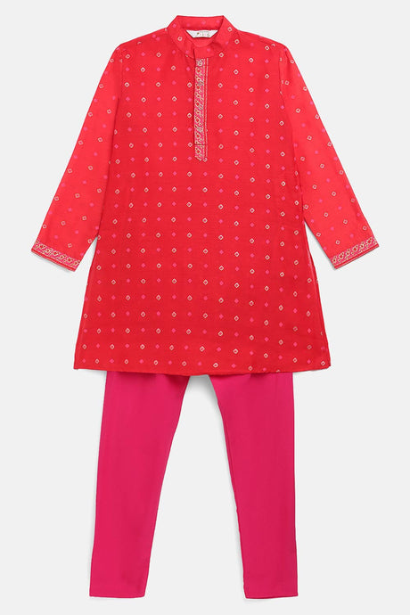 Boys Red Chanderi Gold Khari Print Kids Kurta Churidar Set
