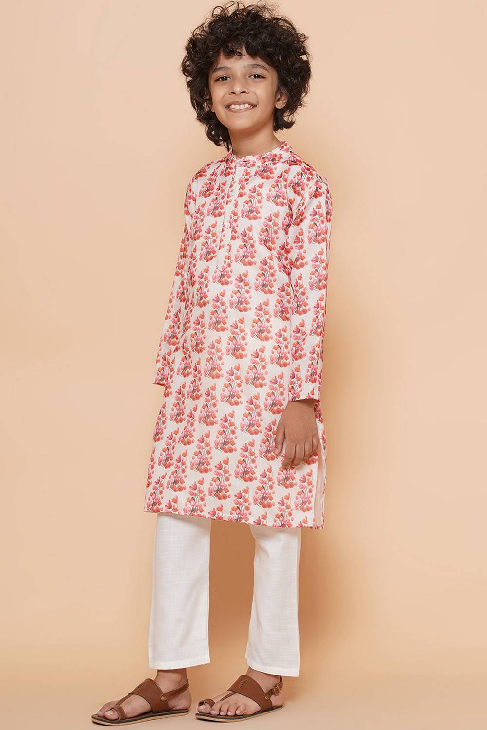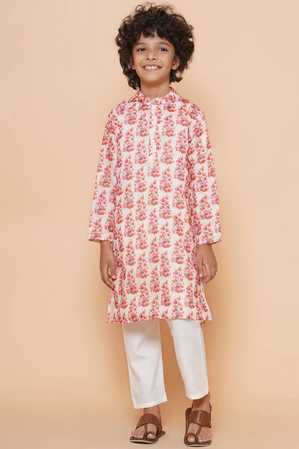 Dress him in elegance with our Kurta Set a classic Kurta Set designed for timeless style. Crafted from soft Silk it offers a comfortable fit for all-day wear. The intricate Floral Printed adds a traditional touch to this outfit. Perfect for Festive,Party this Kurta Set is a versatile choice for any festive or formal occasion. Pair it with white churidar pants and traditional juttis for a complete ethnic outfit. Make every moment special with the charm of Kurta Set