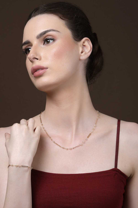Green Gold-Plated Natural Stones And Emerald Bracelet