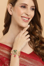 Pink Gold-Plated Kundan And Pearls Bracelet