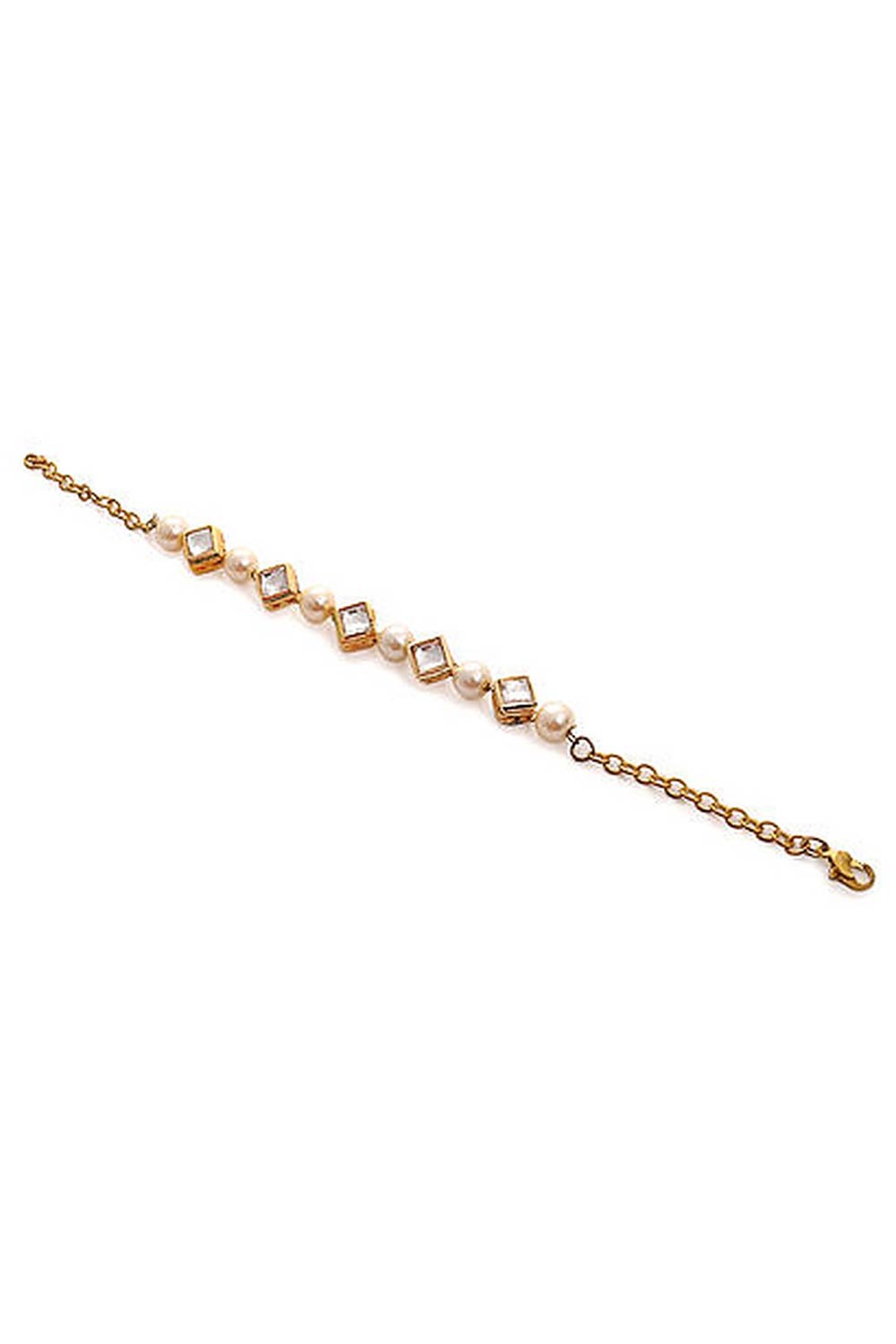 Product Features:- Color: White Gold Tone Kundan Inspired Pearl Bracelet