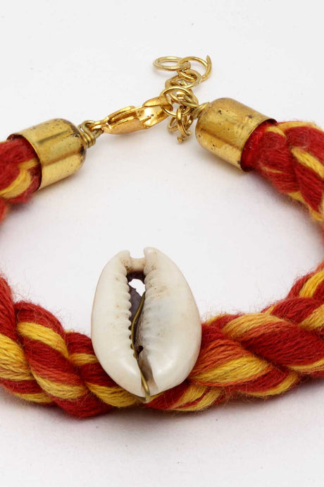 Red And Gold Adjustable Bracelet With Pearls And Natural Stones