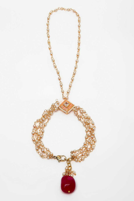 Red And Cream Layered Bracelet With Kundan And Pearls