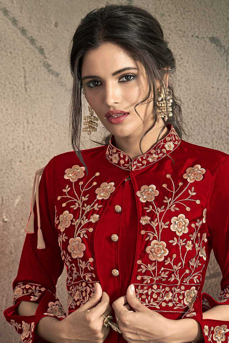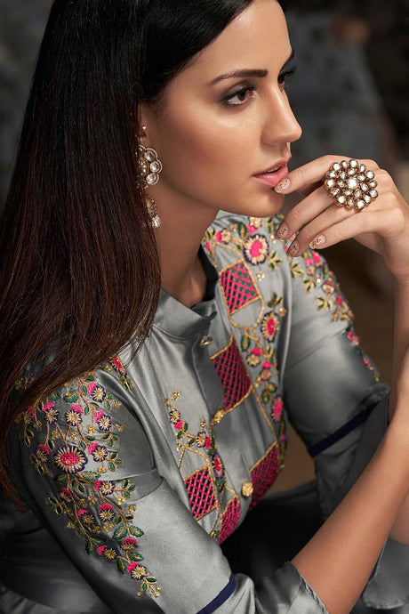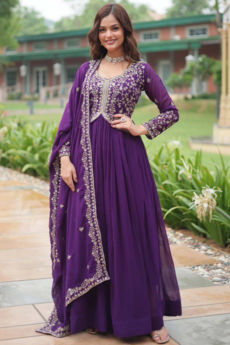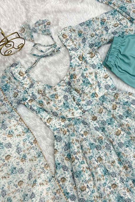 Pista Georgette Multi Thread Embroidery Work Anarkali