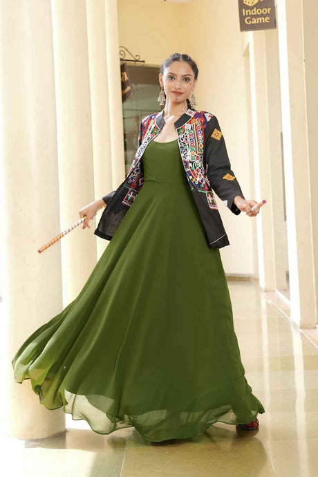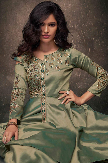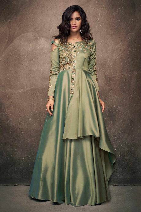 Green Georgette Shibori Printed And Sequin Embroidery Work Gown