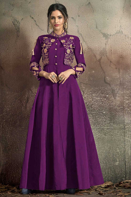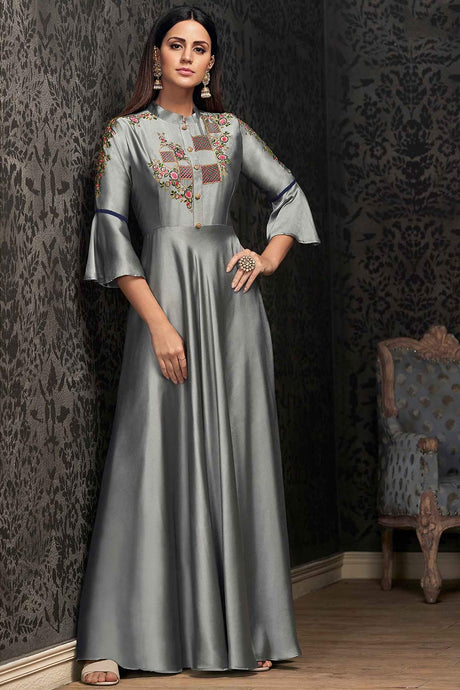 Blue Chanderi Designer Digital Printed Gown With Dupatta