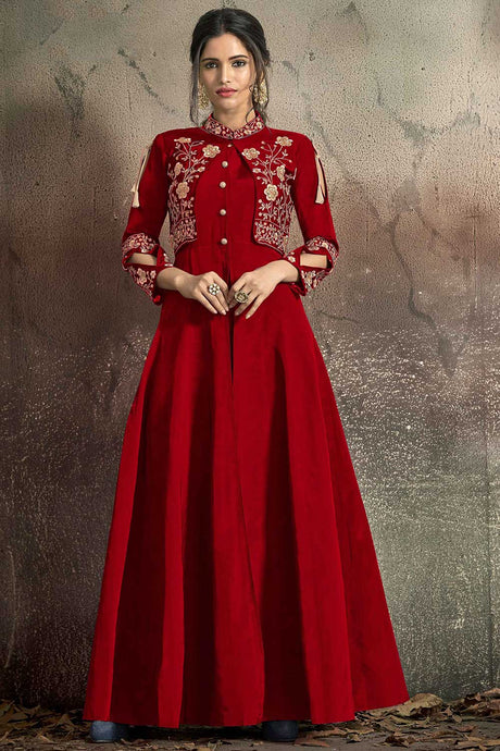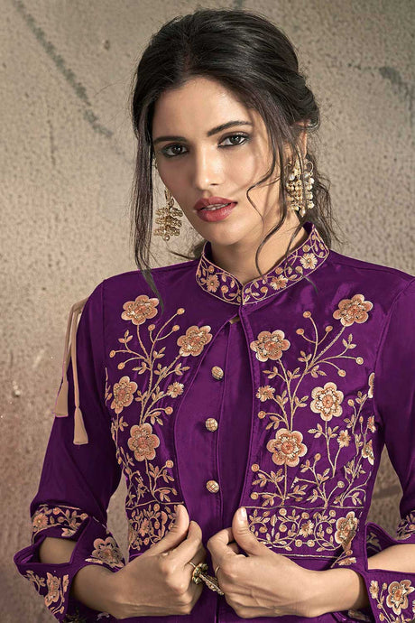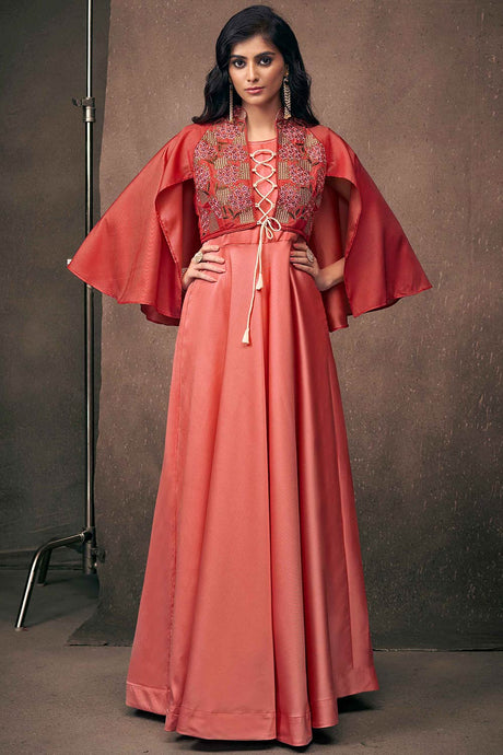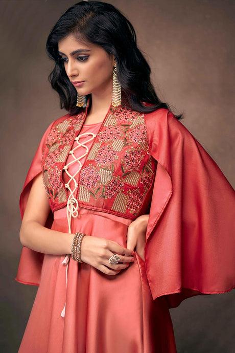Peach Cotton Thread And Sequins Embroidery Work Gown With Koti