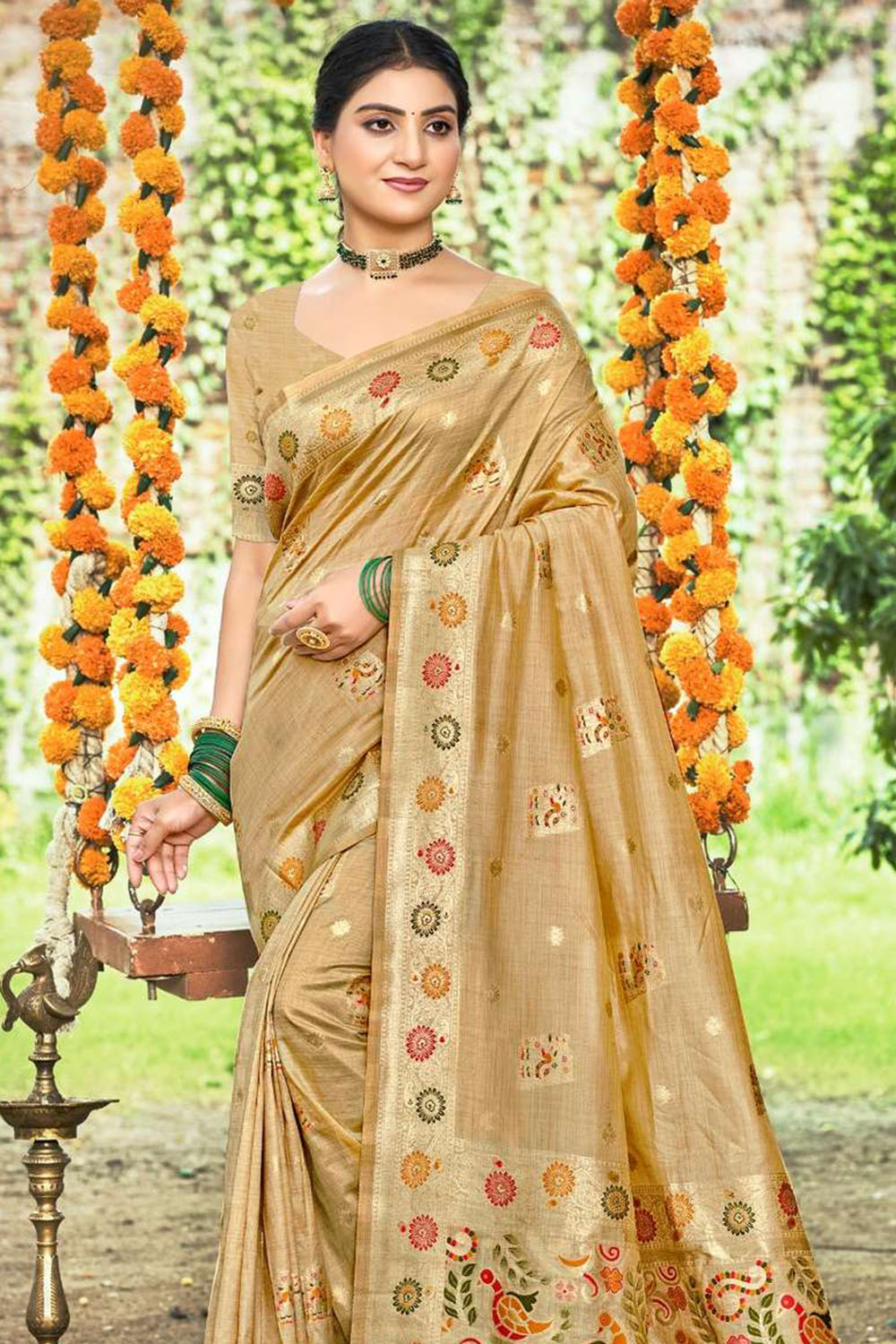 Elevate your wardrobe with our exquisite Saree, a masterpiece crafted to add timeless elegance to your style. Made from Silk this saree offers a perfect mix of comfort and sophistication. Adorned with Woven it showcases intricate craftsmanship that speaks volumes of tradition and artistry. Perfect for Festive this saree is a versatile addition to your collection, ensuring you stand out effortlessly. Pair it with elegant Jewelry, for a glamorous look. Add Clutches or Potli Bags and complete the ensemble with Wedges & Heels , making it a perfect choice for any event. Make a statement and embrace the elegance of Saree today