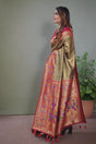 Elevate your wardrobe with our exquisite Saree, a masterpiece crafted to add timeless elegance to your style. Made from Tissue this saree offers a perfect mix of comfort and sophistication. Adorned with Woven it showcases intricate craftsmanship that speaks volumes of tradition and artistry. Perfect for Weddingwear,Sangeet,Reception this saree is a versatile addition to your collection, ensuring you stand out effortlessly. Pair it with elegant Jewelry, for a glamorous look. Add Clutches or Potli Bags and complete the ensemble with Wedges & Heels , making it a perfect choice for any event. Make a statement and embrace the elegance of Saree today