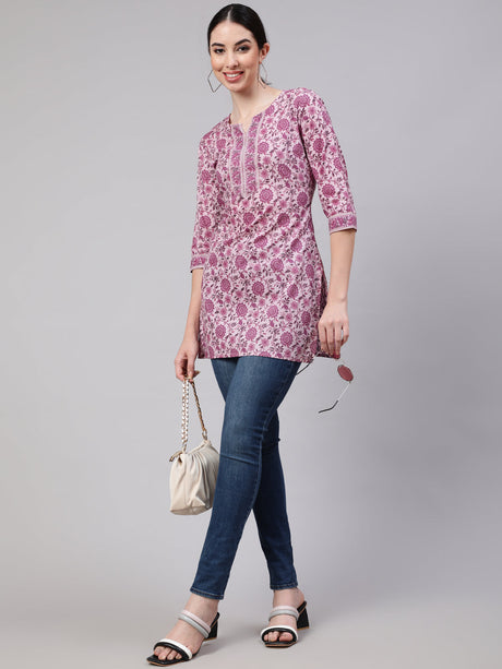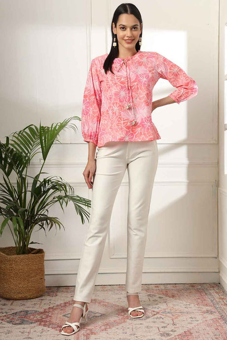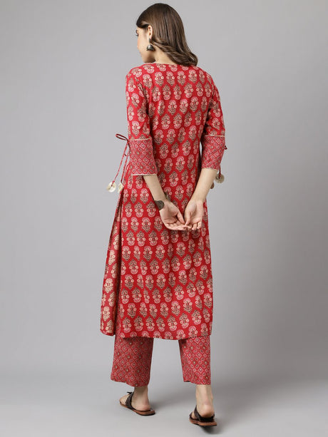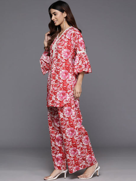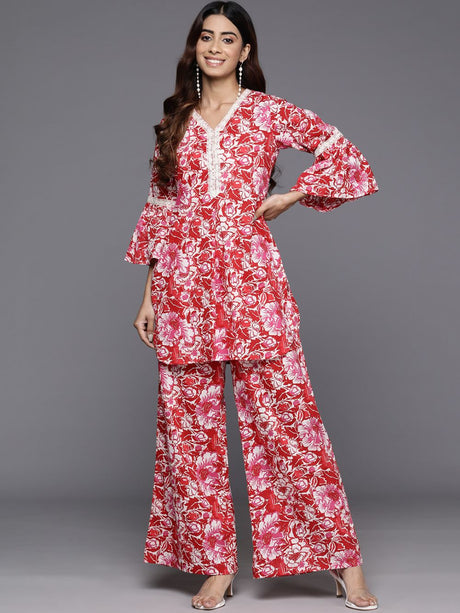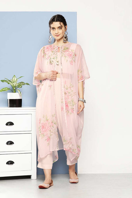 Pink Ethnic Printed Straight Palazzo Suit Set
