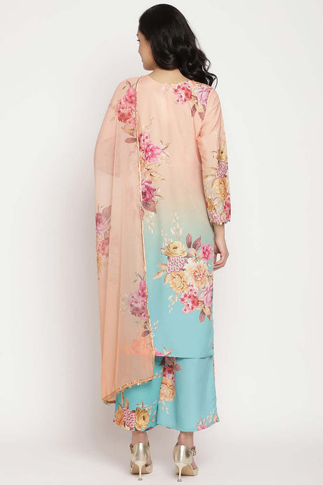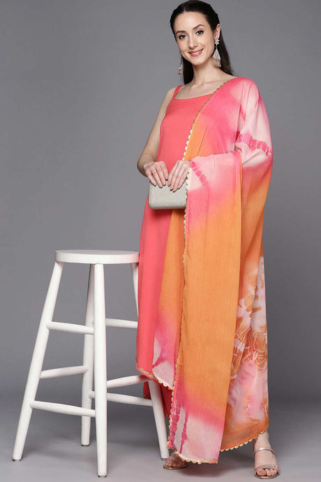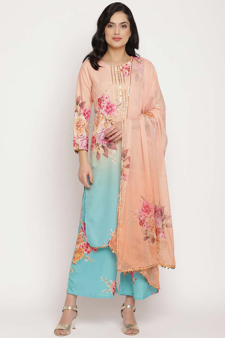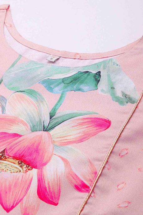 Peach Rayon Blend Floral Printed Straight Kurti Pants With Dupatta