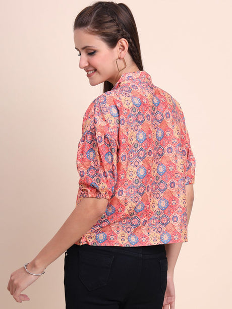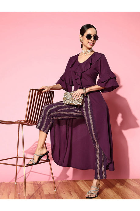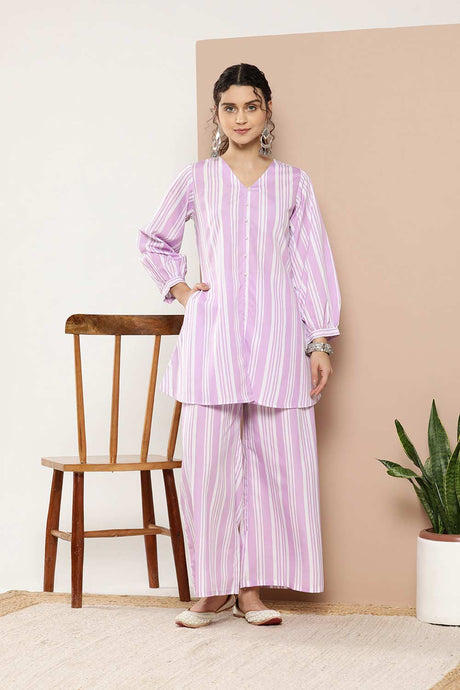Purple Polyester Printed Straight Shirt Collar Co-Ord Set