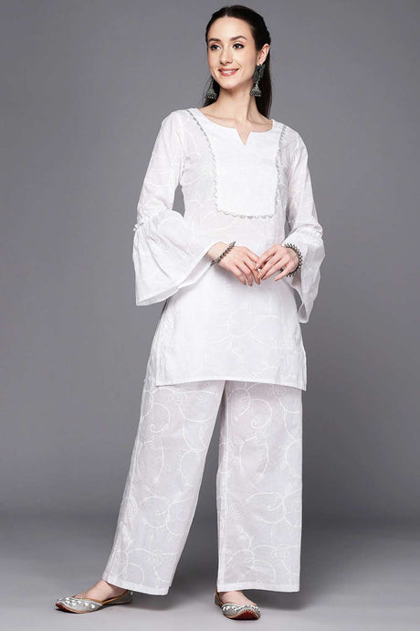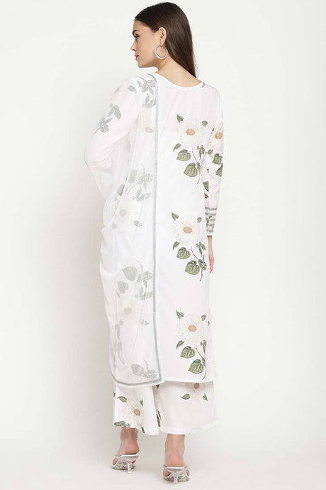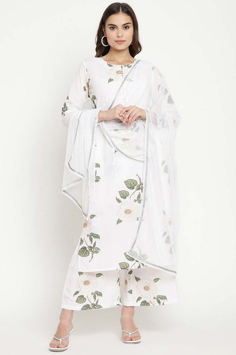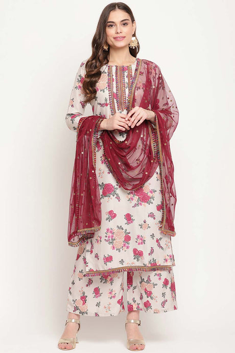 Off White Silk Blend Solid Embroidered Straight Kurti Pant With Dupatta